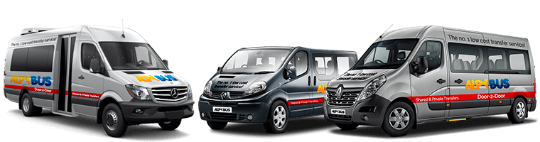 Renault Master - The Renault masters make up a large proportion or our fleet, with a grey metallic finish and AlpyBus branding you won’t miss them. Each minibus has 13 seats for passengers, plus space for luggage, and each vehicle as standard has air conditioning and heating for those cold winter mornings. The Masters do a great job of delivering transfers all over the Alps, plus all are fitted with snow tyres and chains in the Winter months.
