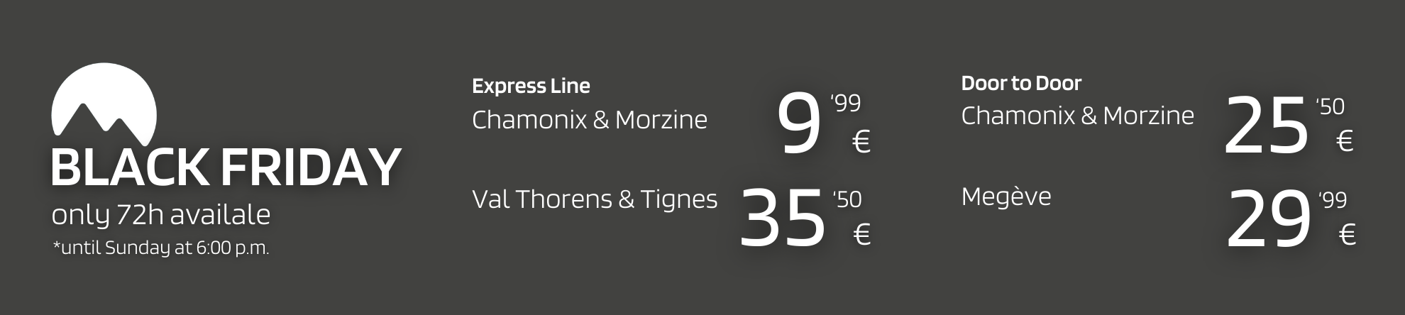 This season, enjoy our Express Line & Door-to-Door services to Chamonix and Morzine, Private Transfers across the Alps, and unforgettable Excursions!