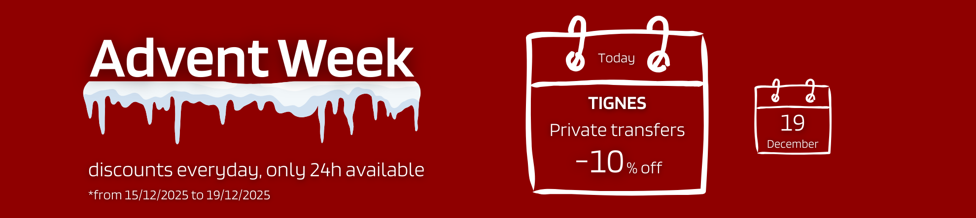 JUEVES 18 DE DICIEMBRE Traslados privados Tignes -10% descuento!